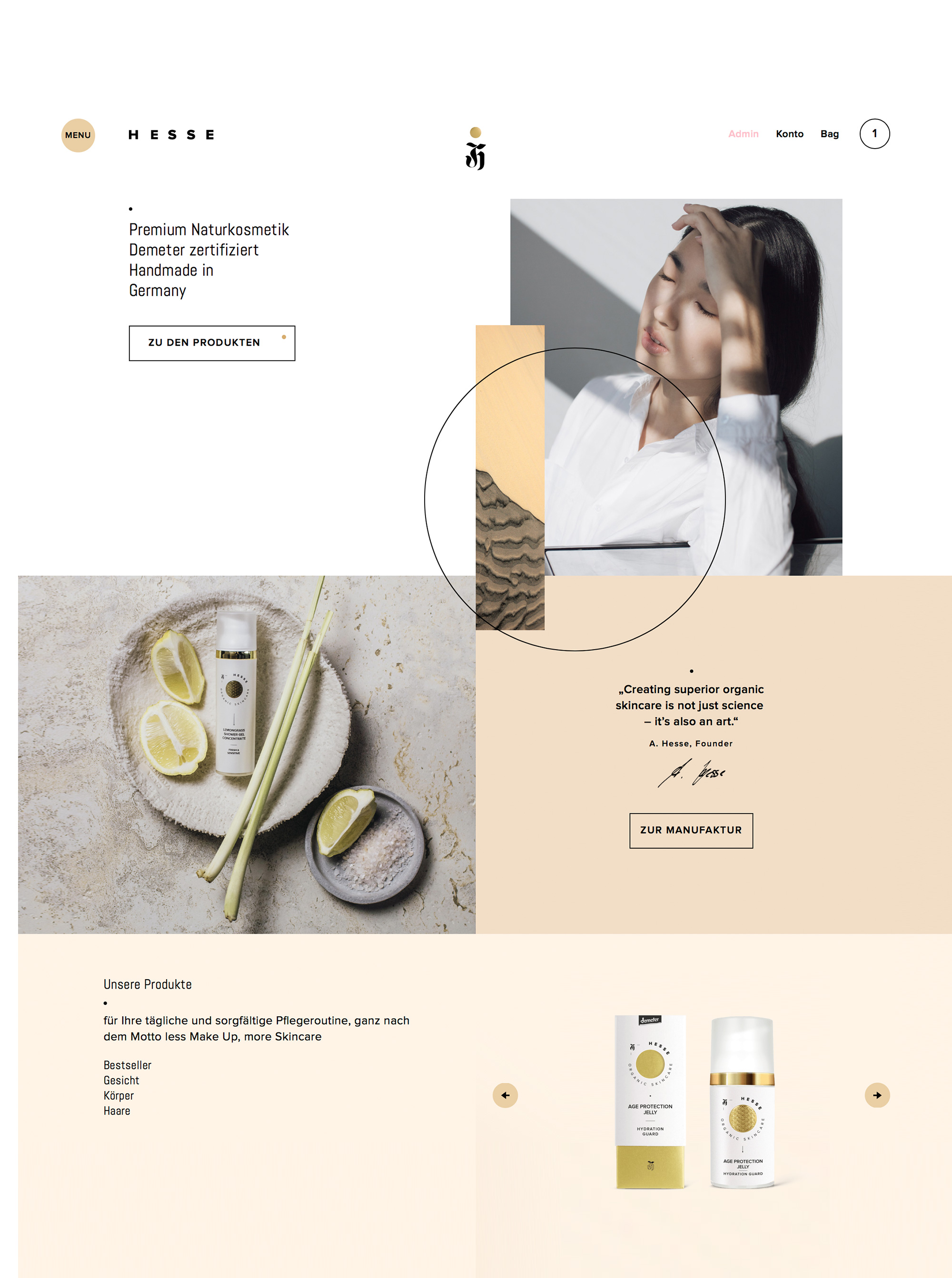 Hesse Skincare is a new born brand. The client reached out to us at the very start to find answers on how to build their own skincare brand in the premium cosmetic market. After a strategy phase to define the brand, goals and marketing approach, we developed the Brand Identity, Packaging, Content such as Photography and Text and the Corporate Website inclduding eCommerce solution.