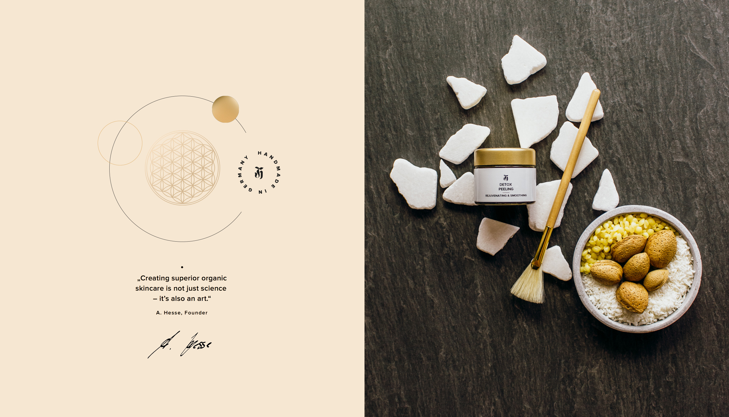 It wasn't too hard to decide on the naming as Hesse Skincare is 100% the love and soul of Andreas and Maria Hesse. Their passion, uncompromising and love for quality. For the Hesse logo icon we created a letter that has a traditional german touch as well as a japanese feel to it. German craftmanship and Japanese purity and skincare secrets was the perfect mix to create a modern yet sophisticated look.
