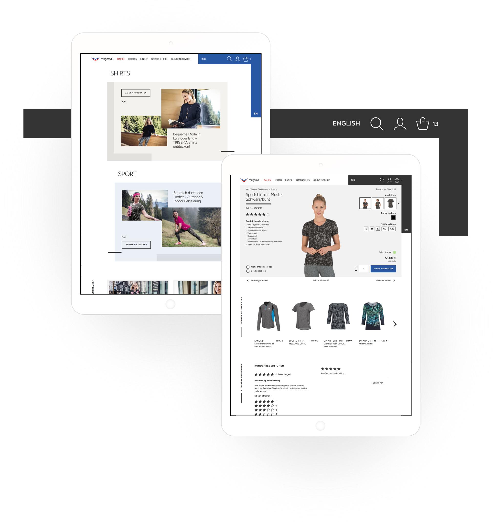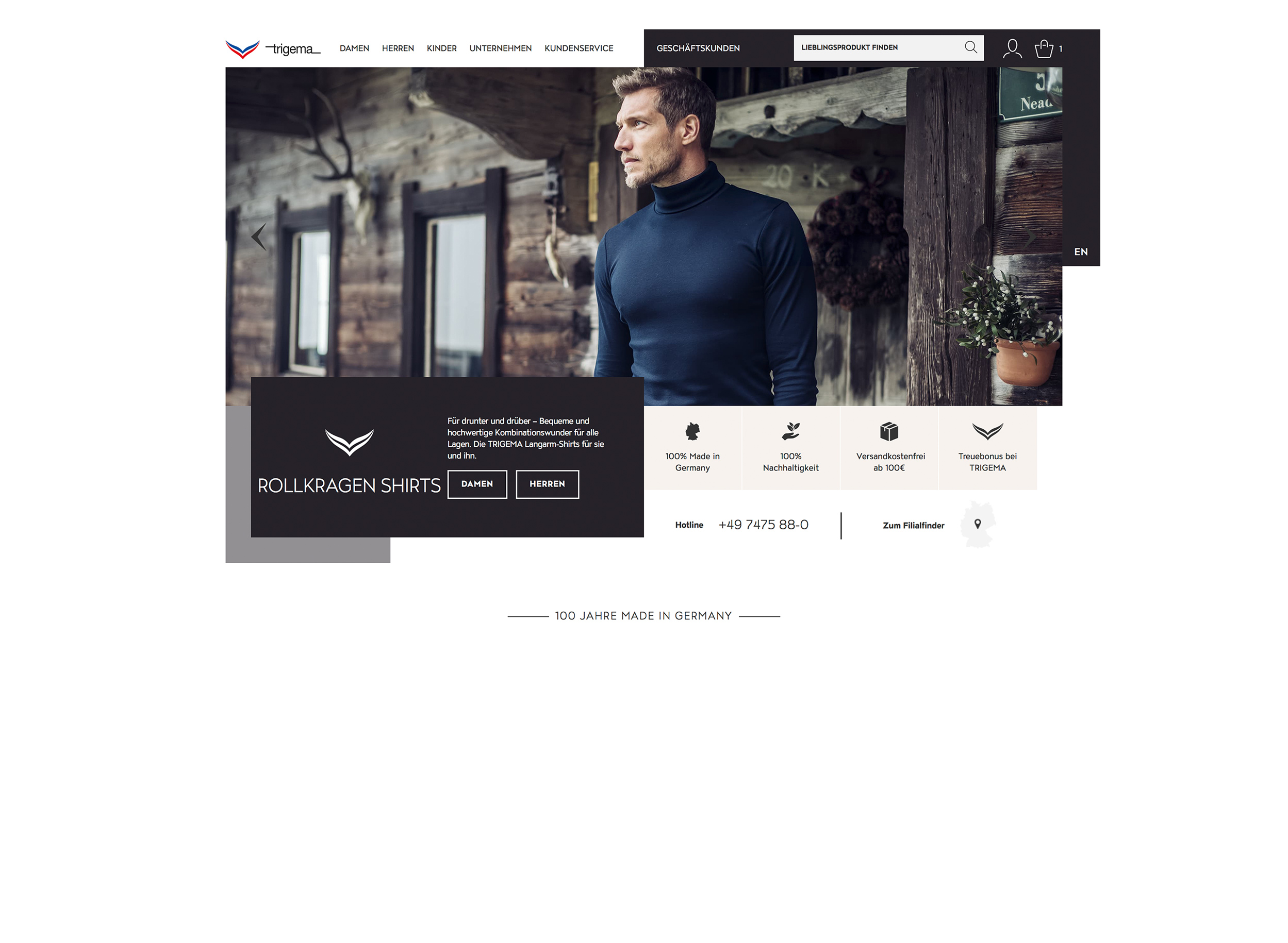 Trigema, established in 1919, is Germanys largest manufacturer of sportswear and casual fashion. The company supplies top-quality sports and leisurewear, as well as underwear and nightwear for women, men and children. The brand stands for state-of-the art production technology and social and economic responsibility. Anakin was commissioned to re-design the Webstore and Website as well as lifting the overall online appearance to a new level.